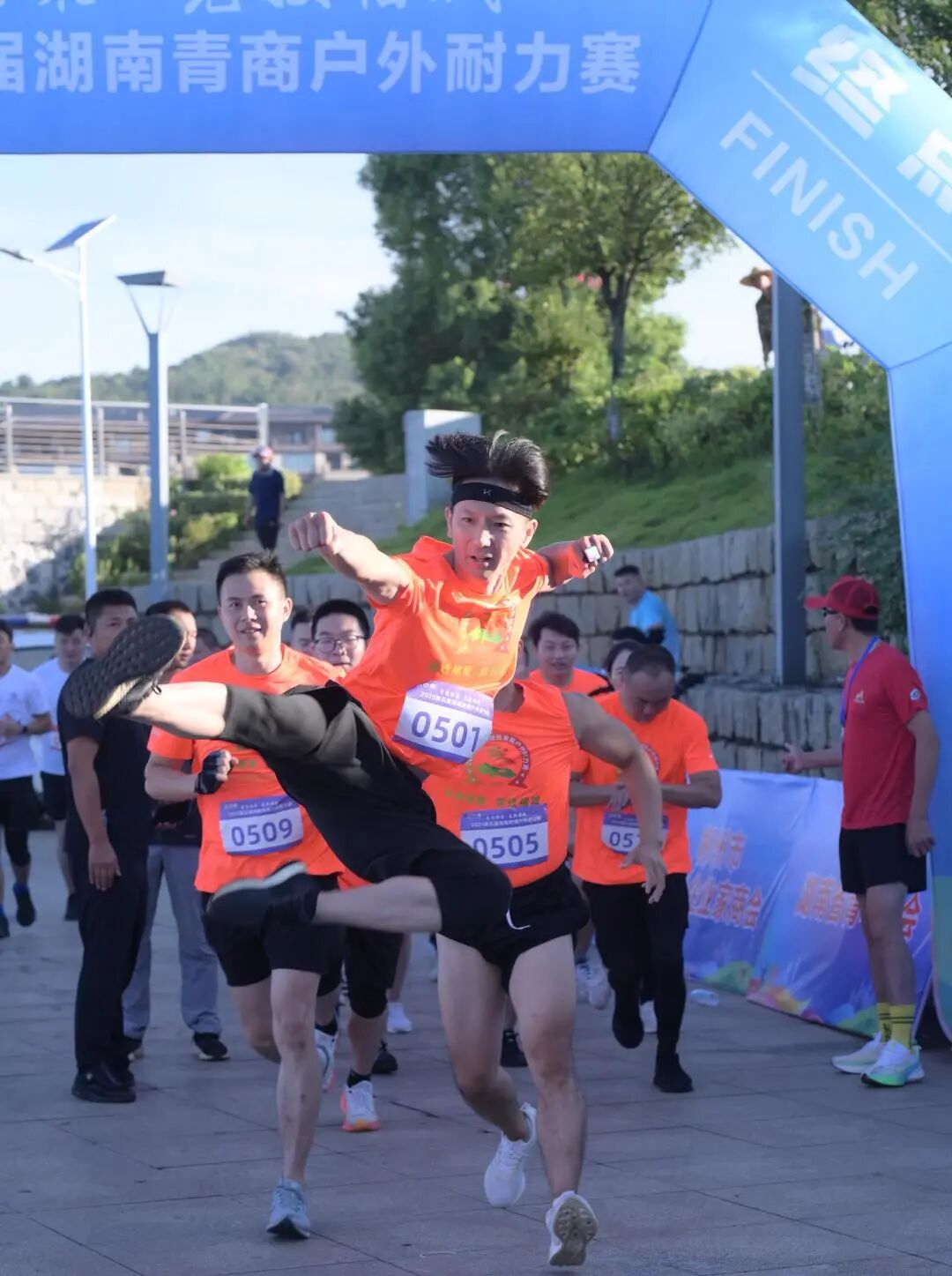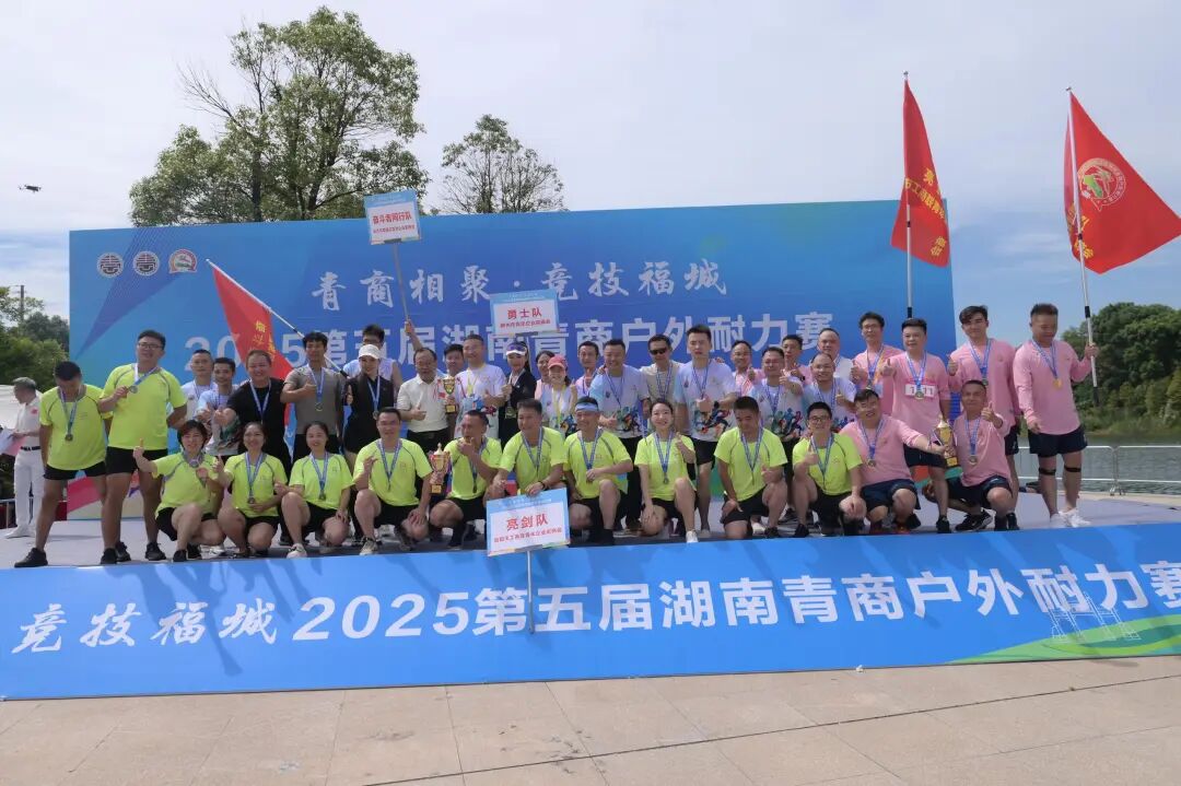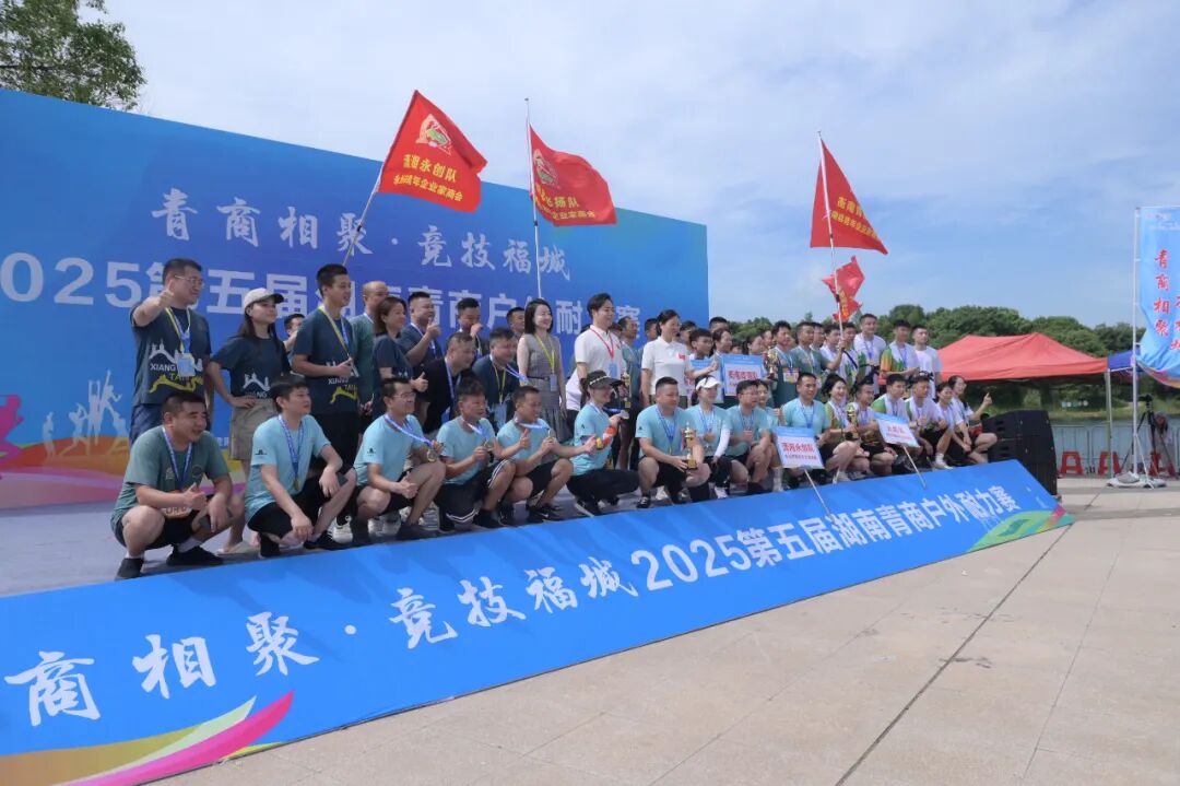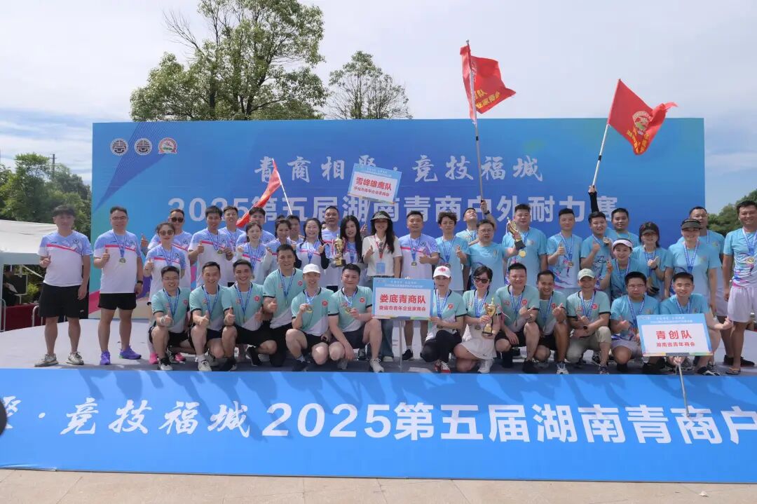活力竞技 相聚郴州—— 第五届湖南青商户外耐力赛 01 参赛队伍团队风采展示 22日下午,第五届湖南青商户外耐力赛参赛队伍队长会议召开,裁判长对竞赛规则及相关注意事项进行了解读,并进行了出发顺序抽签。 22日晚上,参赛队伍团队展示之前,郴州市青年企业家商会会长陈海龙作为东道主致欢迎辞。陈海龙会长对来自全省的16支参赛队伍表示热烈欢迎,感谢各位青年企业家齐聚郴州,并为全体参赛队伍加油助威,增长士气。他提到,本次赛事为全省青年企业家搭建了重要的交流合作平台,展现了湖南青商团结协作、勇于拼搏的精神风貌。他期待各参赛队在比赛中秉持"友谊第一,比赛第二"的原则,既要赛出风格、赛出水平,也要以赛为媒,加强交流合作,共同探讨企业发展之道。最后,他预祝赛事圆满成功,各参赛队取得优异成绩,并在郴州留下美好回忆。 随后,来自省内各地市州青商组织组成的16支参赛队伍进行了精彩的团队展示。其中,由湖南省青年商会理事唐佼洁领队的青创队代表省青商会参赛。 02 开幕仪式 8月23日早上,第五届青商户外耐力赛(郴州站)在郴州市北湖区仙岭湖体育公园激情开赛。 在开幕仪式上,郴州市政协副主席、市工商联主席李波勇宣布“青商相聚·竞技福城”第五届湖南青商户外耐力赛正式开始。 郴州市委统战部副部长、市工商联党组书记侯峥辉致辞。 随后,领导嘉宾移步至发令台,共同为比赛鸣枪发令。发令枪响,点燃了青春的激情,16支战队有序进入赛道,首支战队听令出发。 作为湖南省青年商会的品牌活动,湖南青商户外耐力赛自2016年起已成功举办四届。本届赛事吸引了全省16支青年企业家队伍参赛。比赛赛道巧妙融合郴州独特的自然与人文景观,既充满挑战性,又极具观赏性。通过团队作战模式,参赛选手将在比赛中切磋技艺、展现风采,进一步提升湖南省青年企业家群体的凝聚力和向心力。活动呈现了一场独具郴州特色的招商引资文化赛事,为参赛者设置了一个个好玩又刺激的项目。赛道全长7.5公里,全程设有3公里耐力跑,一共设置了11个障碍关卡和5个党建知识、建国知识、湖南非遗知识、郴州红色文化知识答题和成语猜猜猜关卡。 03 颁奖仪式 8月23日中午,第五届湖南青商户外耐力赛颁奖仪式在郴州市北湖区仙岭湖体育公园举行。 在颁奖仪式上,湖南省青年商会会长戴跃锋向省市领导队青商耐力赛的关怀与支持,郴州市青商会的辛勤付出和热情招待以及青商小伙伴们积极参与表示衷心的感谢,并向获得各项荣誉的单位和个人表示热烈的祝贺。他提到,本次赛事充分展现了青年企业家顽强拼搏、团结协作的精神风貌,赛道上的汗水与坚持生动诠释了青春激情与团队力量。戴会长对各团队展现的迎难而上的挑战精神、蓬勃向上的团队活力和默契配合的协作精神表示赞扬。他表示,青年企业家是经济社会发展的重要力量,希望将赛场上的拼搏精神和团队意识延续到事业发展中,以更大热情迎接新挑战。湖南省青年商会将继续发挥桥梁纽带作用,为青年企业家搭建更多交流合作平台,共同为湖南经济发展贡献青春力量。 经过激烈的角逐,郴州市青商会的先锋队、株洲市青商会的铁友队、衡阳市青商会的鸿雁队,分别斩获冠军、亚军、季军。 郴州市政协副主席、市工商联主席李波勇为荣获“一等奖”的郴州市青商会先锋队颁奖。 全球湘商联盟青年委员会主任、湖南高诺产业集团有限公司董事长毛铁为荣获“二等奖”的株洲市青商会铁友队、衡阳市青商会鸿雁队颁奖。 郴州市委统战部副部长、市工商联党组书记侯峥辉为荣获“三等奖”的望城青商会奋斗者同行队、郴州市青商会勇士队、岳阳市青商会亮剑队颁奖。 湖南省青年商会执行会长兼秘书长,湖南百康健康管理有限公司董事长李翼为荣获“最佳团队协作奖”的怀化市青商会雪峰雄鹰队、湖南省青年商会青创队、娄底市青商会娄底青商队颁奖。 郴州市北湖区人民政府副区长周晓燕为荣获“最具活力团队奖”的常德市青商会武陵狼战队、株洲市青商会君旗队、长沙市青商会灵气闪耀队颁奖。 郴州市工商联党组成员、副主席许毅敏,湖南省青年商会副会长、湖南海联三一小苏打有限公司总经理周游为荣获“最具挑战精神奖”的常宁市青商会火焰队、湘潭市青商会青志飞扬队、衡南县青商会衡南青商队、永州市青商会潇湘永创队颁奖。